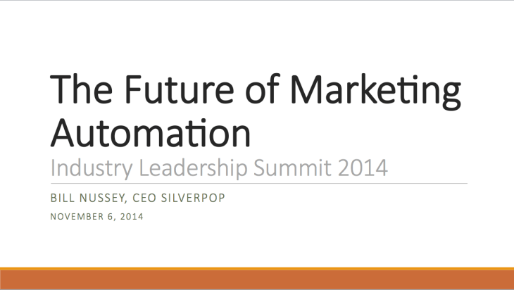 In November 2014, I was invited to keynote the Industry Leadership Summit, a marketer-focused event held here in Atlanta. Lisa Calhoun, the producer of the event, inspired me to go beyond the typical technology and best practices covered in similar presentations and to define the future in terms of its impact on marketers and their customers. I was really excited to deliver the presentation and really appreciated the great questions and feedback.